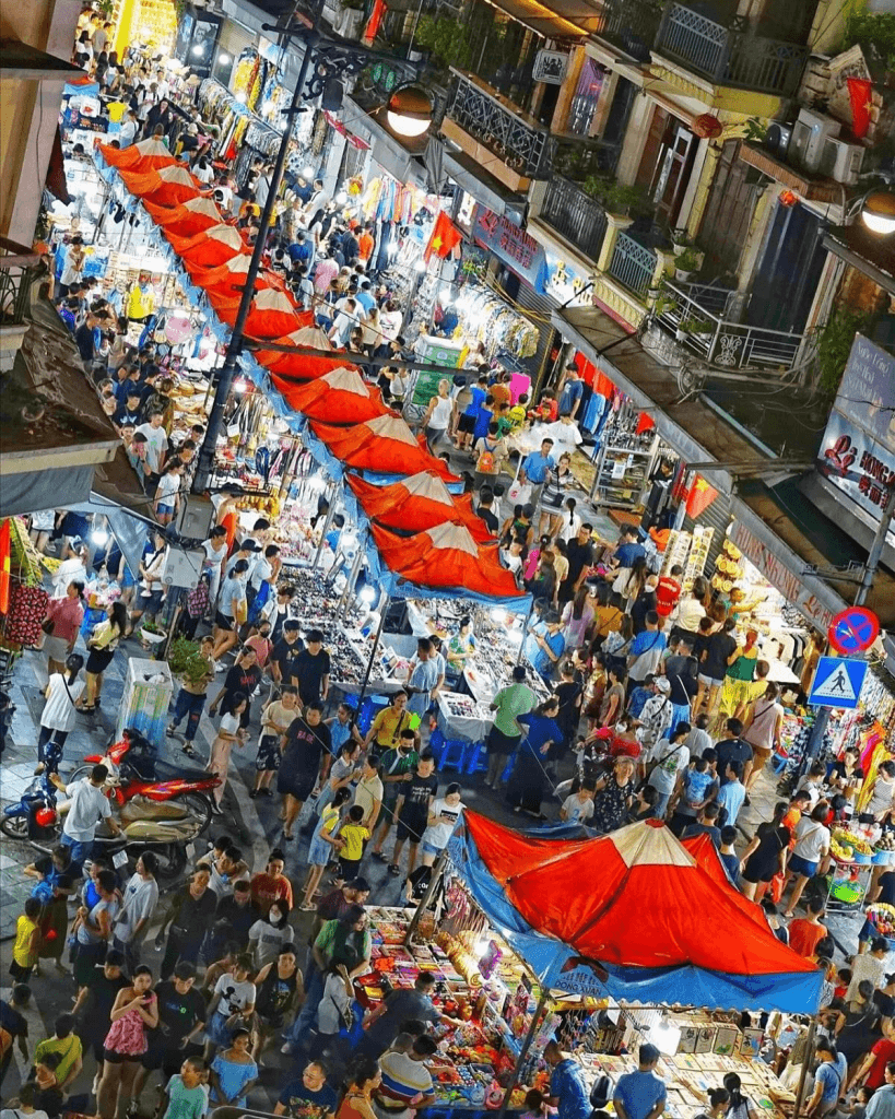 Every Friday to Sunday evening, the Old Quarter transforms into a pedestrian street market with clothes, souvenirs, street food, and live performances.
