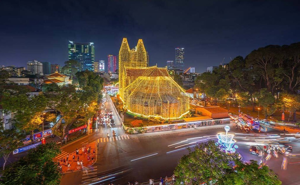 In both Hanoi and Ho Chi Minh City, Christmas is embraced by believers and non-believers alike. Ho Chi Minh City stands out as one of Vietnam’s largest Christmas celebrations, home to approximately two-thirds of the country’s Christians. It’s a time for friends to gather, share love, and soak up the festive atmosphere while strolling through beautifully illuminated streets.