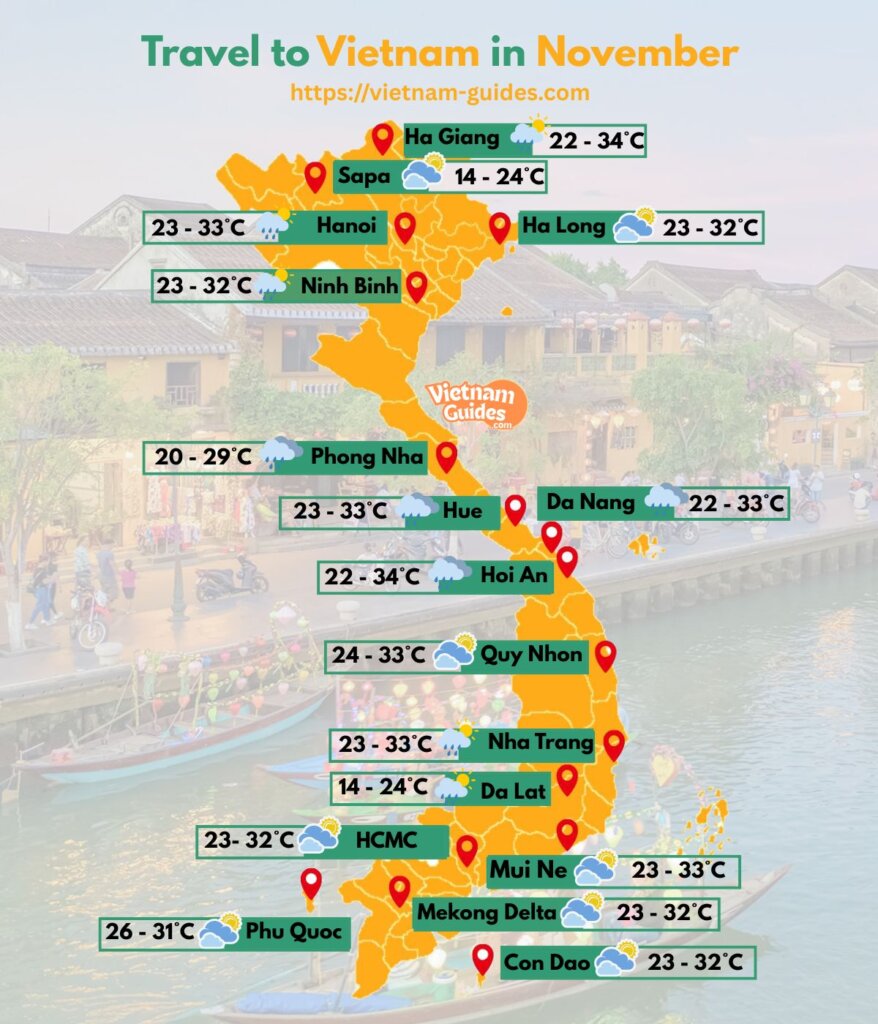 Vietnam stretches over 1,600 km from north to south, so weather in November varies dramatically by region: